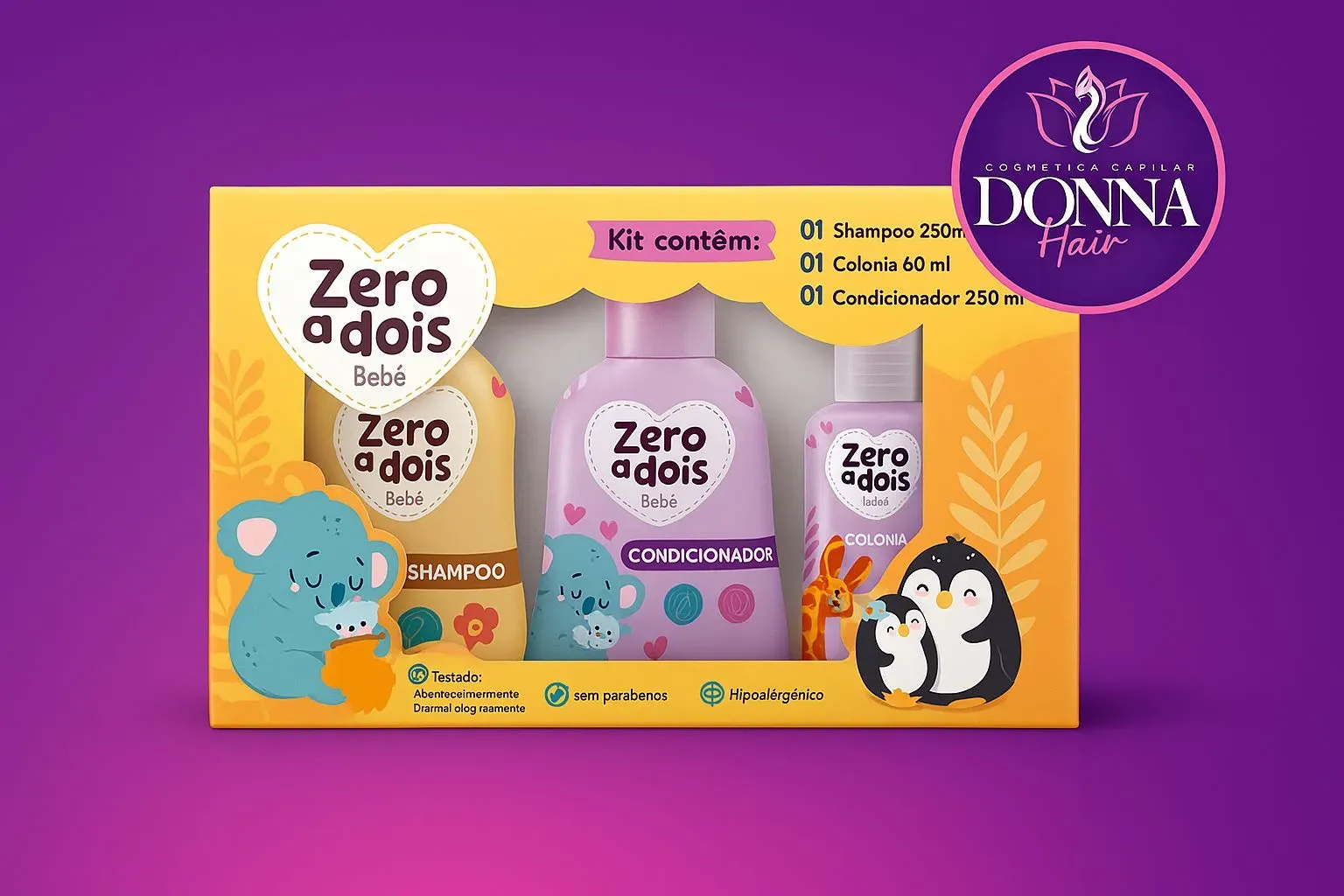 Incluye: shampoo 250 ml, acondicionador 250 ml y colonia 60 ml. Fórmula sin sales ni sulfatos, vegana e hipoalergénica, ideal para un lavado delicado y una piel protegida. 🍼🌸